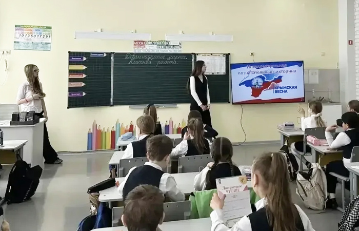 В честь Дня воссоединения Крыма с Россией в школе провели игру «Что? Где? Когда?»